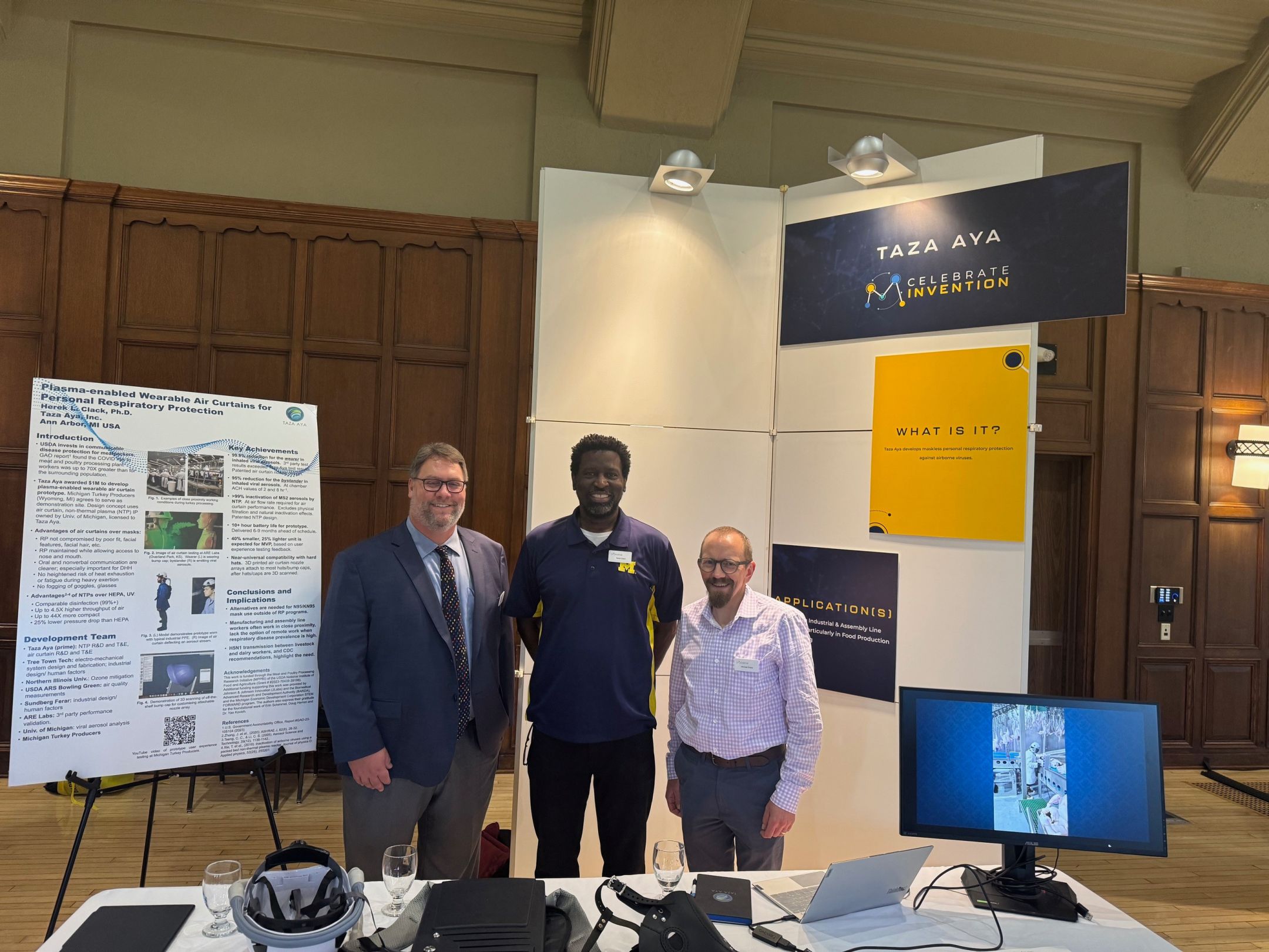 Rob debuted as CEO along side COO Mike Drake and CSO Herek Clack at the recent Celebrate Invention event (above) held by University of Michigan’s Innovation Partnerships. His leadership will guide Taza Aya through its next phase of growth, focusing on bringing our groundbreaking plasma-enabled wearable air curtain product to market — a patented system that provides an invisible, protective shield of disinfected air around the face, capable of preventing inhalation of 99.8% of viral aerosols — as we accelerate toward first commercial deployment, formalization of strategic partnerships, and completing our $1M seed raise to advance manufacturing and early adoption.